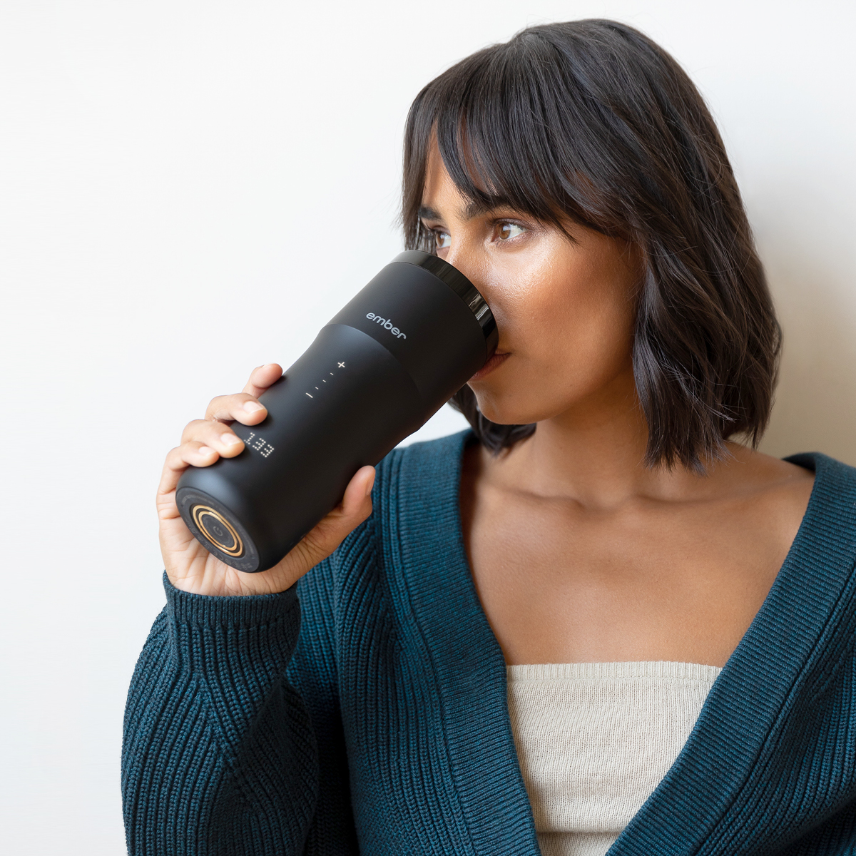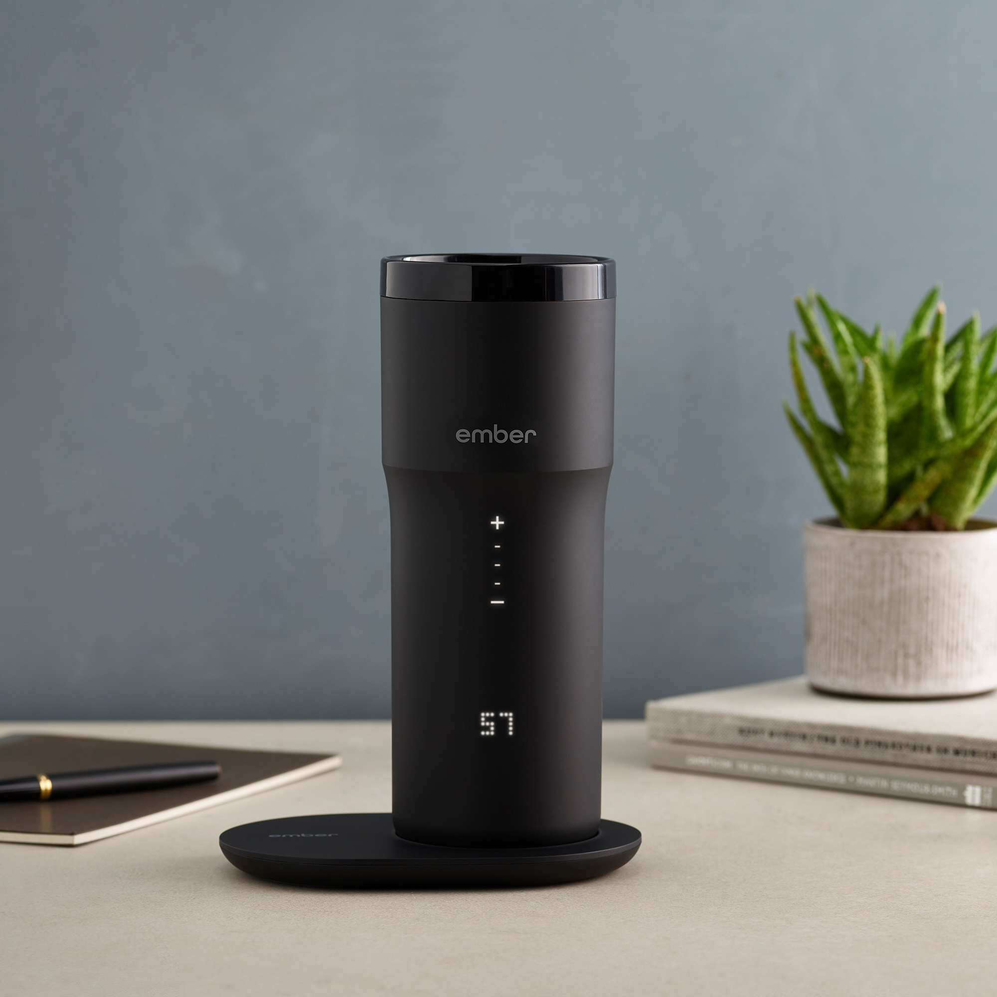 Hannað til að vera notað á ferðinni, Ember Travel Mug 2+ gerir meira en bara halda kaffinu þínu heitu. Þetta snjalla hitaða 355ml ferðamál gerir þér kleift að stilla nákvæmt hitastig sem hentar þér, og heldur því hitastigi í allt að 3 klukkustundir. Kaffið þitt er því aldrei of heitt og aldrei of kalt.
