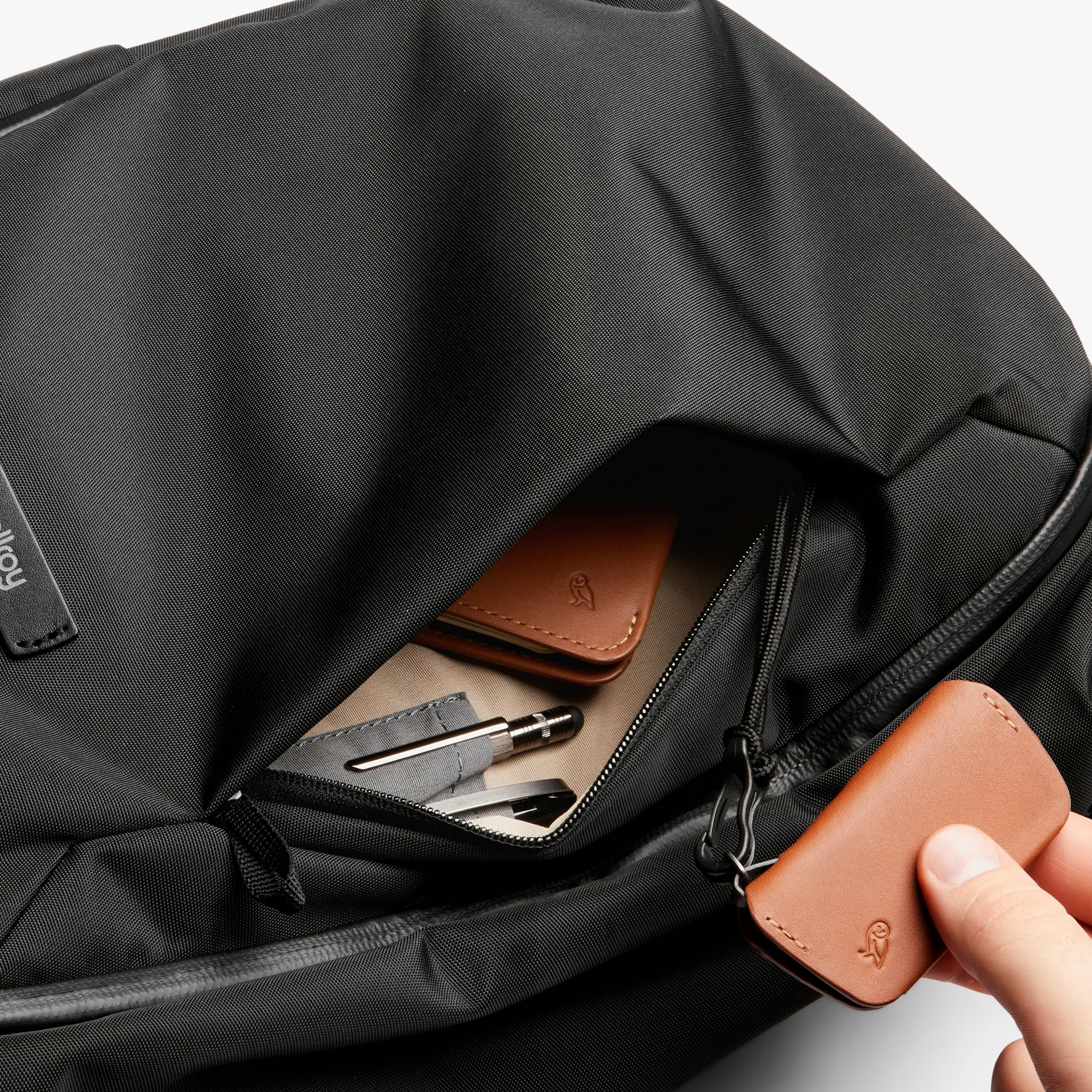 • Stór framvasi með skjótum aðgangi rúmar A5 minnisbækur og litlar spjaldtölvur